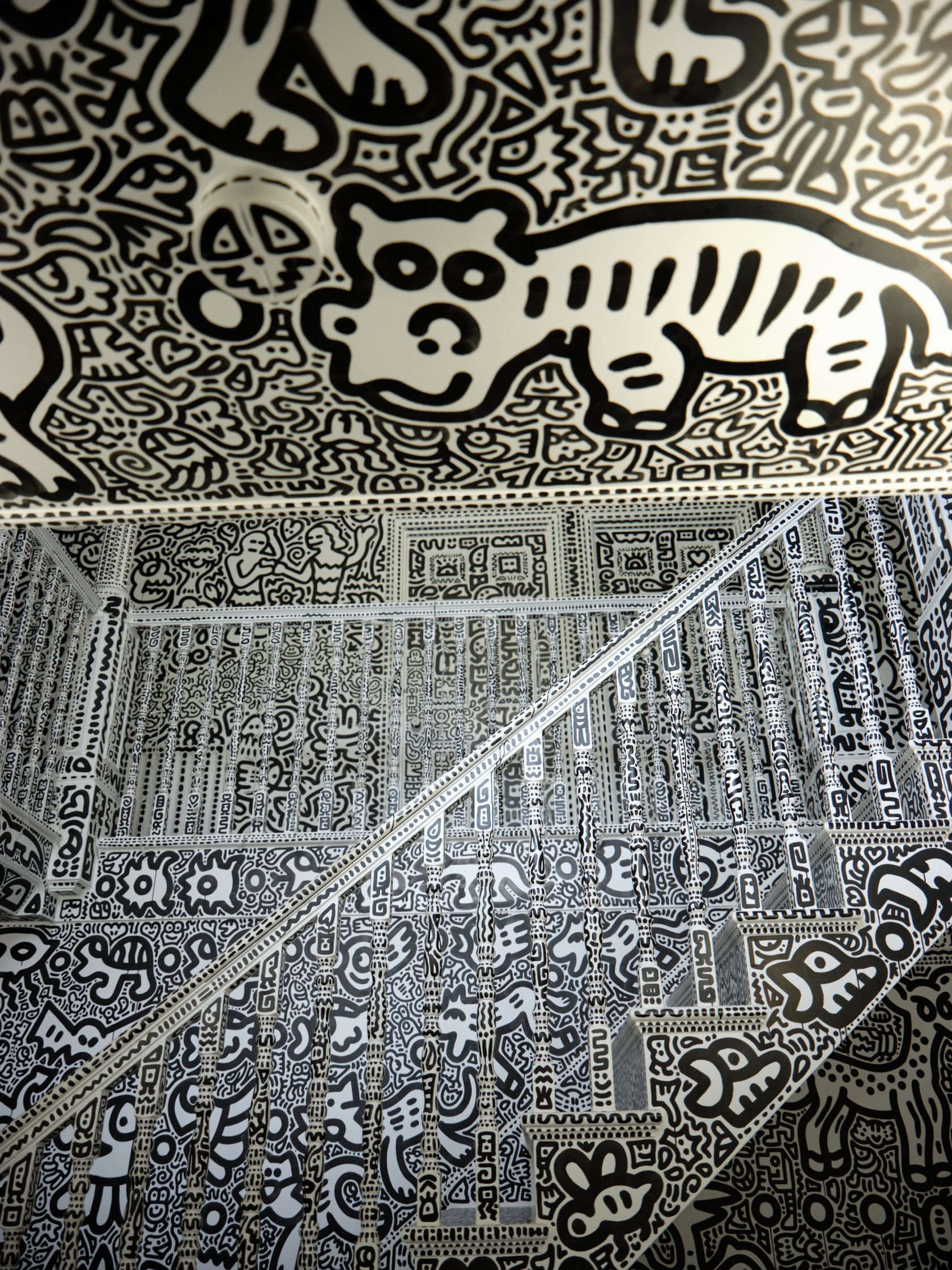 The artist Mr Doodle photographed at his doodled house and studio in Tenterden, Kent
